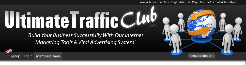 UltimateTrafficClub.com is not a multi-level marketing scheme or a get-rich-quick program, we are purely an advertising platform. We don't require you to have a website or sell any product to use our service. We do not require you to refer anyone to our site to use our service. You won't get rich by using our internet advertising program. This website uses cookies. Being a member and/or continued use of this website indicates that you accept our cookies policy. Thank you, we very much appreciate your support and being a member on our site! Privacy Center | Terms and Conditions | Earnings Disclaimer | Spam Policy | Privacy Policy © Copyright 2019 - UltimateTrafficClub.com ![]() | ||||||||||||||||||||||||||||||||||||||||||||||||||||||||||||||||||||